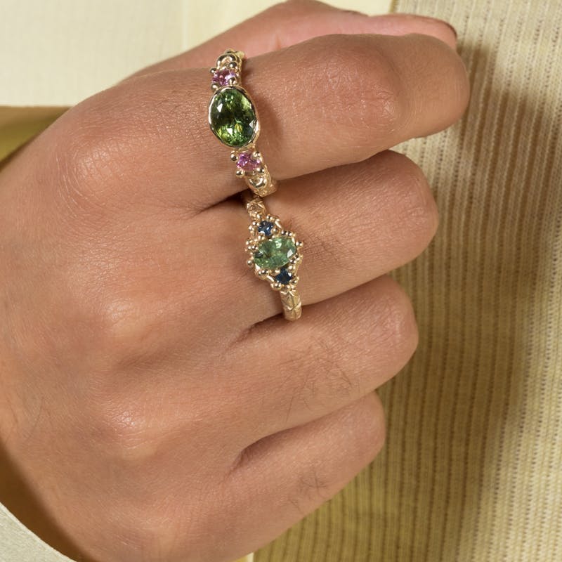 This setting technique sees the stone directly embedded into the wax and then encased in metal. This method is often unpredictable but produces unique, one-off natural looking pieces.