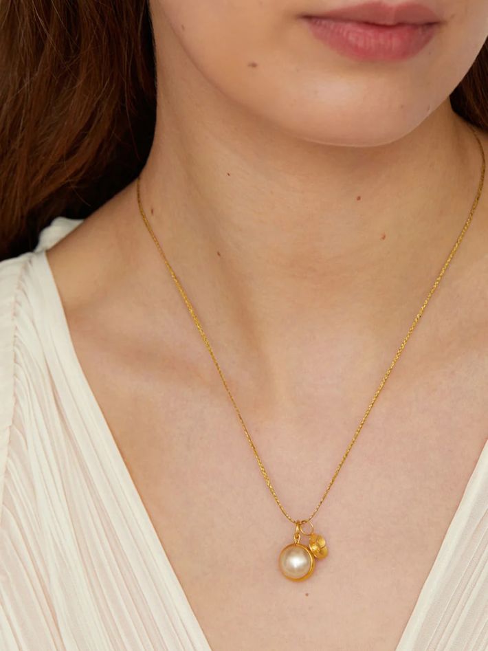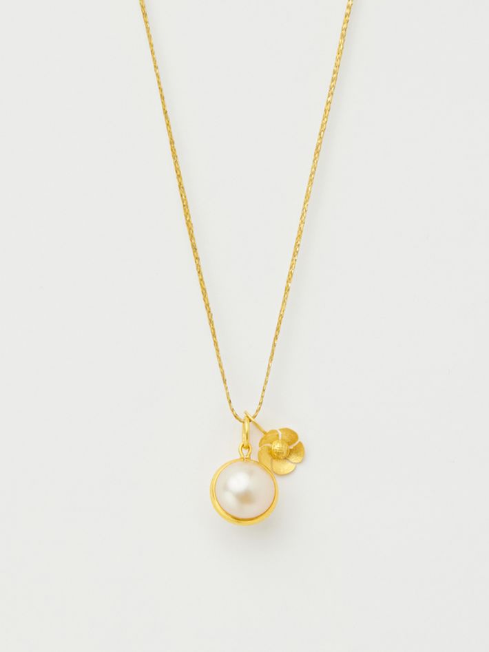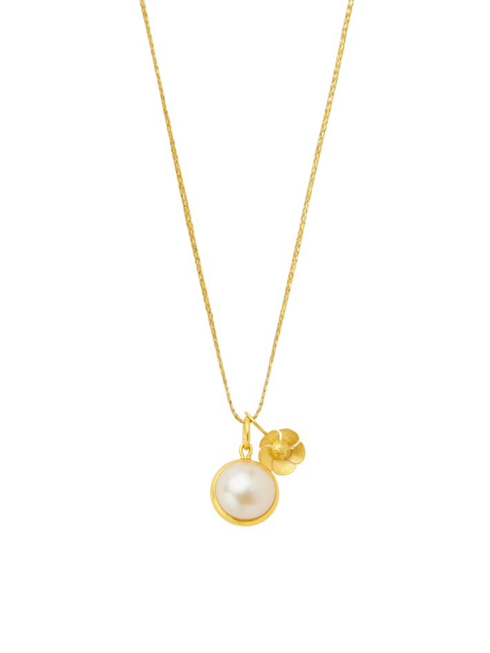 18kt gold pstm myanmar pearl & flower amulets on cord