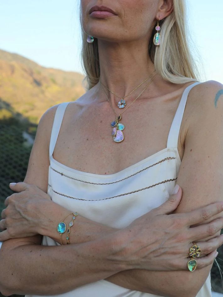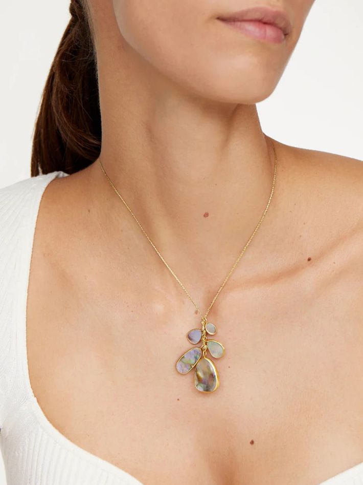18kt gold venus abalone shell cluster amulets on cord