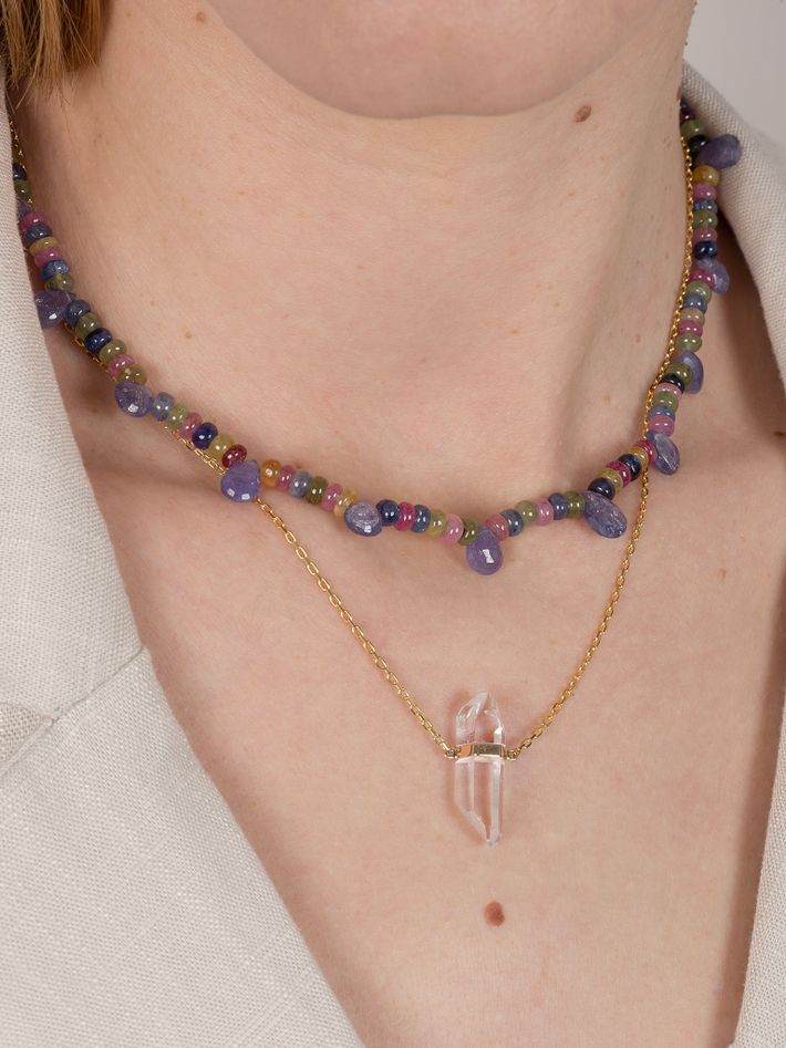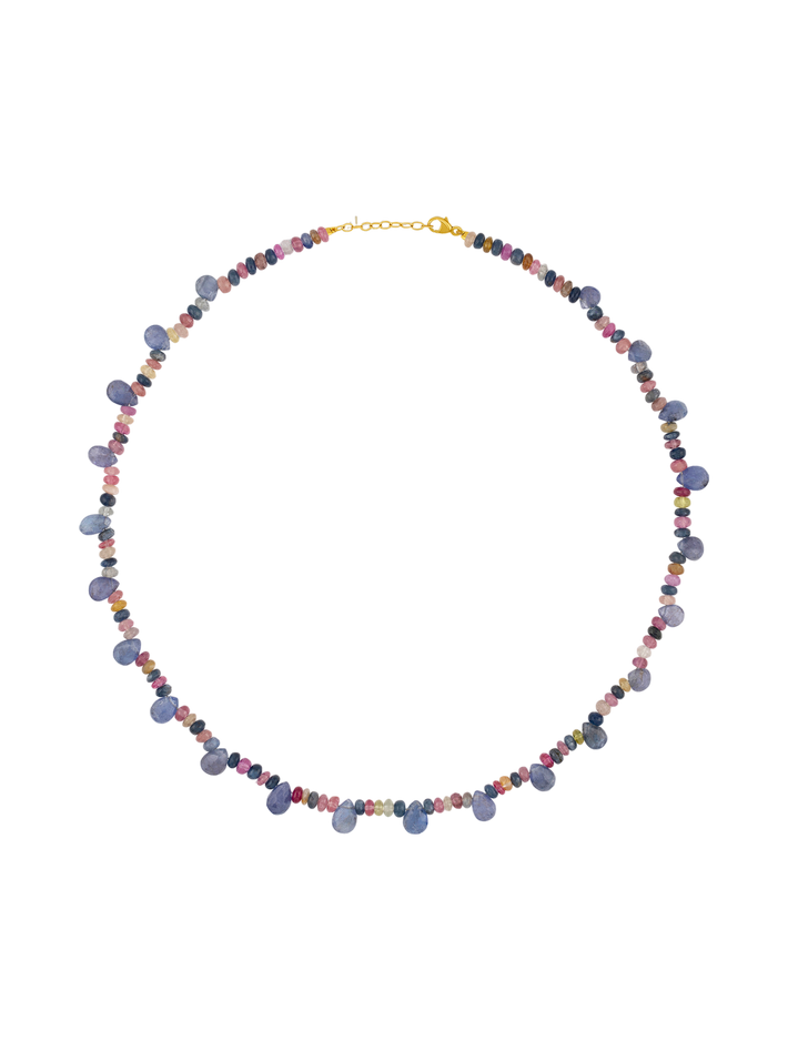 Arizona rainbow sapphire tanzanite drops necklace