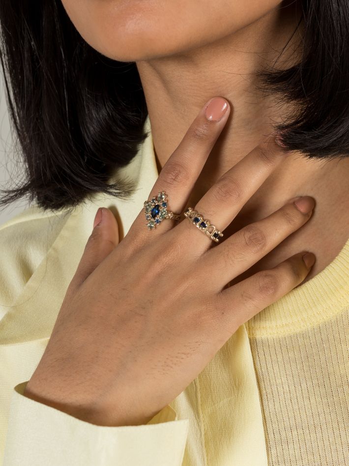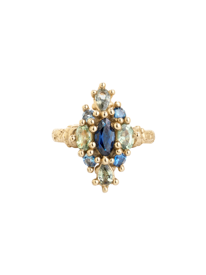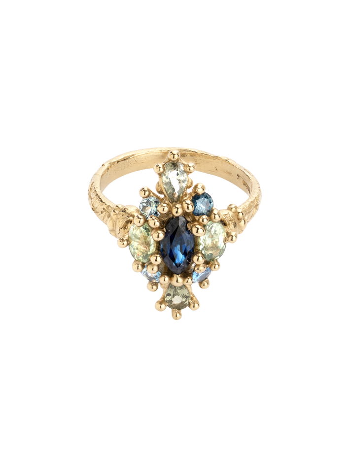 Blue & green navette ring