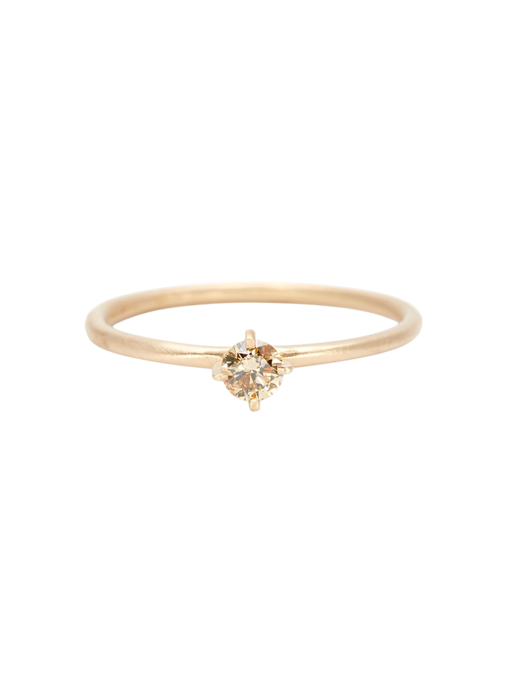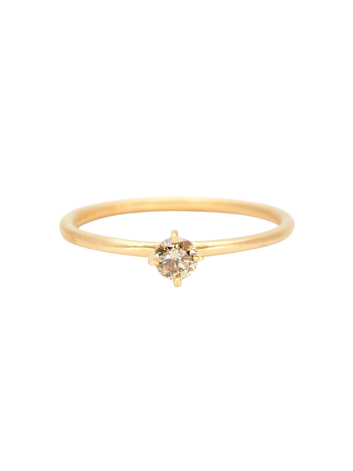 A classic solitaire ring using the signature Satomi Kawakita brown diamond. The setting makes it look as if the stone is floating.