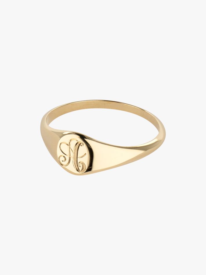 A classic signet destined for heirloom status. We are obsessed with the incredibly elegant script font used to engrave initials.