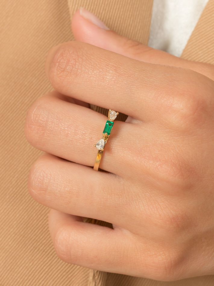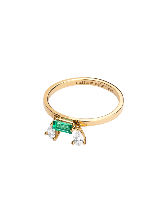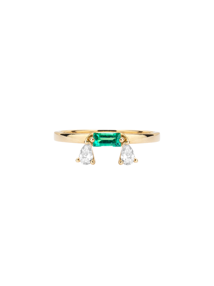 18 kt solid yellow gold0.18 ct in 2 diamonds & 0.17 ct in 1 emerald