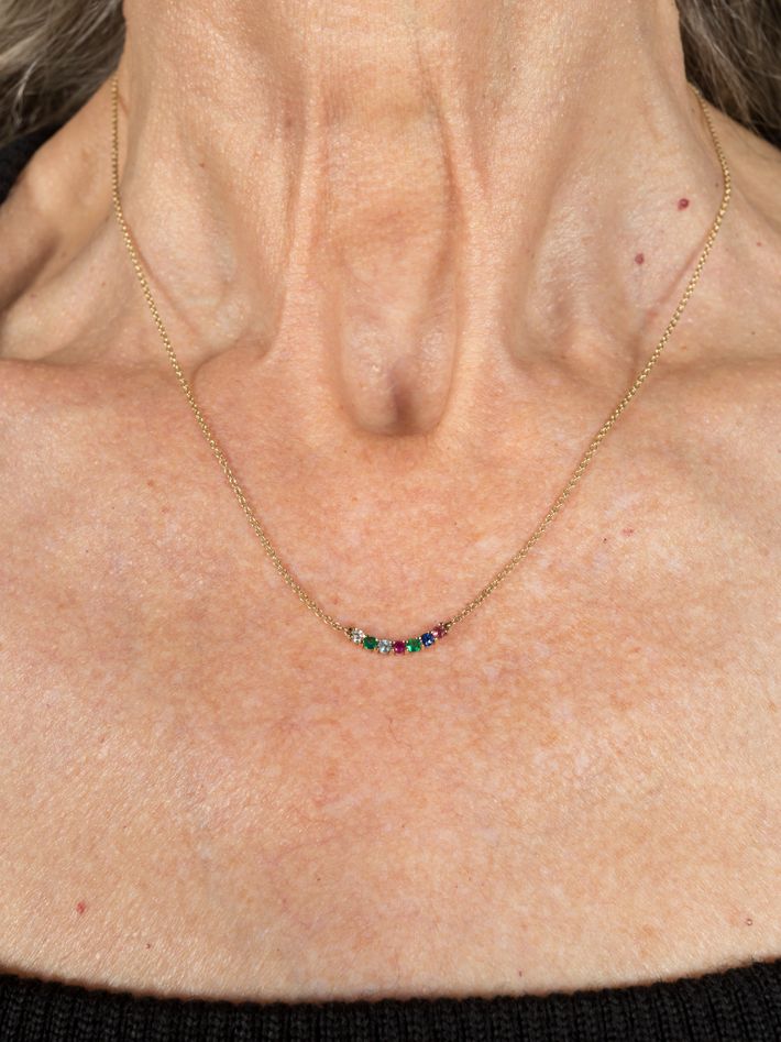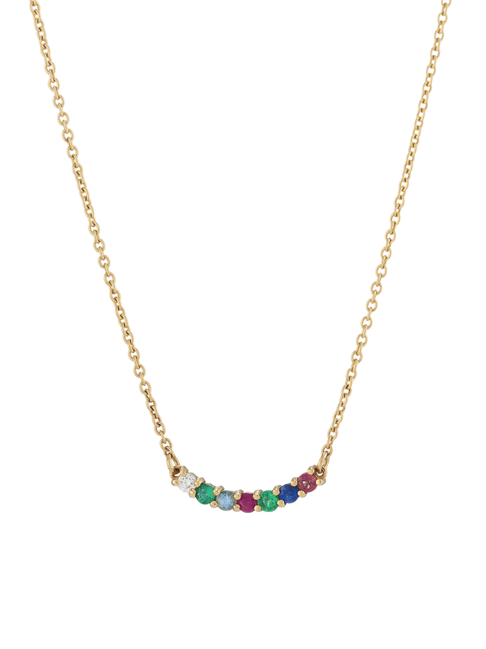 9 kt solid yellow gold0.03 ct in 1 diamond, 0.08 ct in 2 emeralds, 0.04 ct in 1 aquamarine, 0.05 ct in 1 ruby, 0.05 ct in 1 sapphire & 0.04 ct in 1 tourmaline