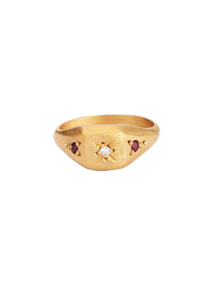 18 kt yellow gold plated sterling silver1 diamond & 2 rubies