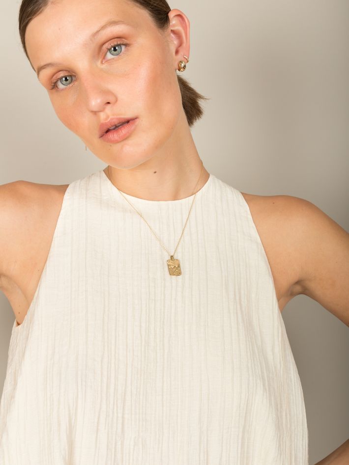 A celestial inspired hoop set with white diamonds, this piece is smooth and sculptural, great for ear stacking.