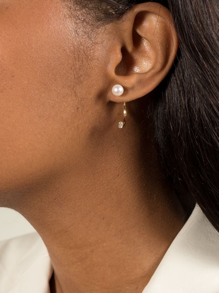 18 kt solid yellow gold0.08 ct in 1 diamond & 1 pearlSingle earring