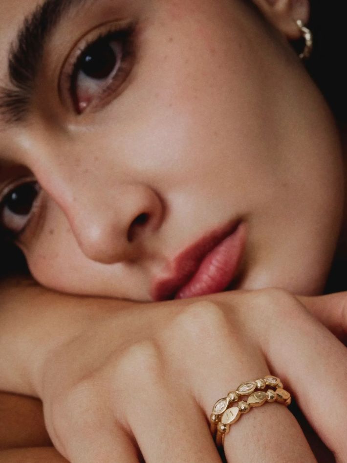 "Amy bases her collection around molten texture and allows the metals to flow freely to form beautiful and unique shapes."