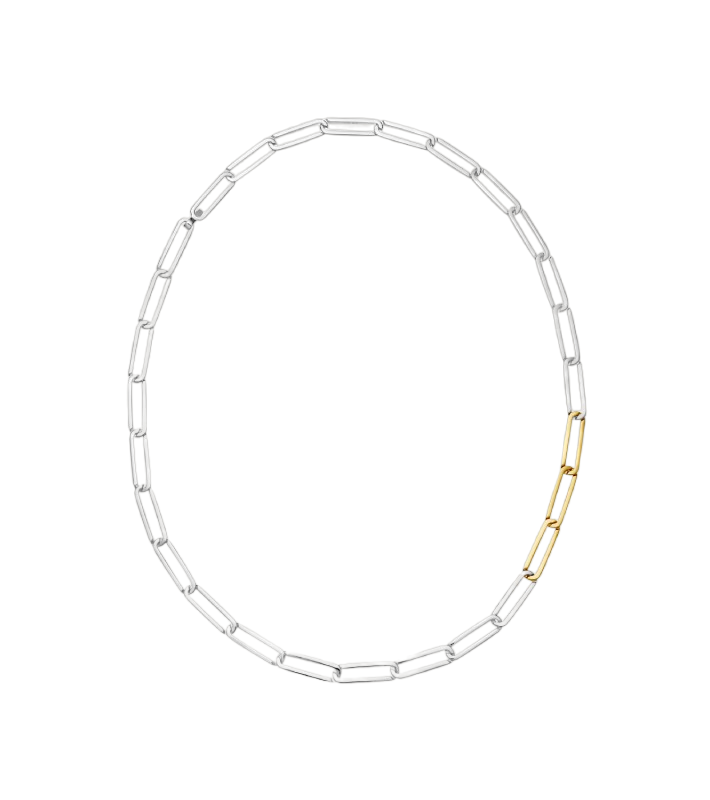 The mixed metal and relaxed luxury feel to this chain mean it can be worn to any occasion.