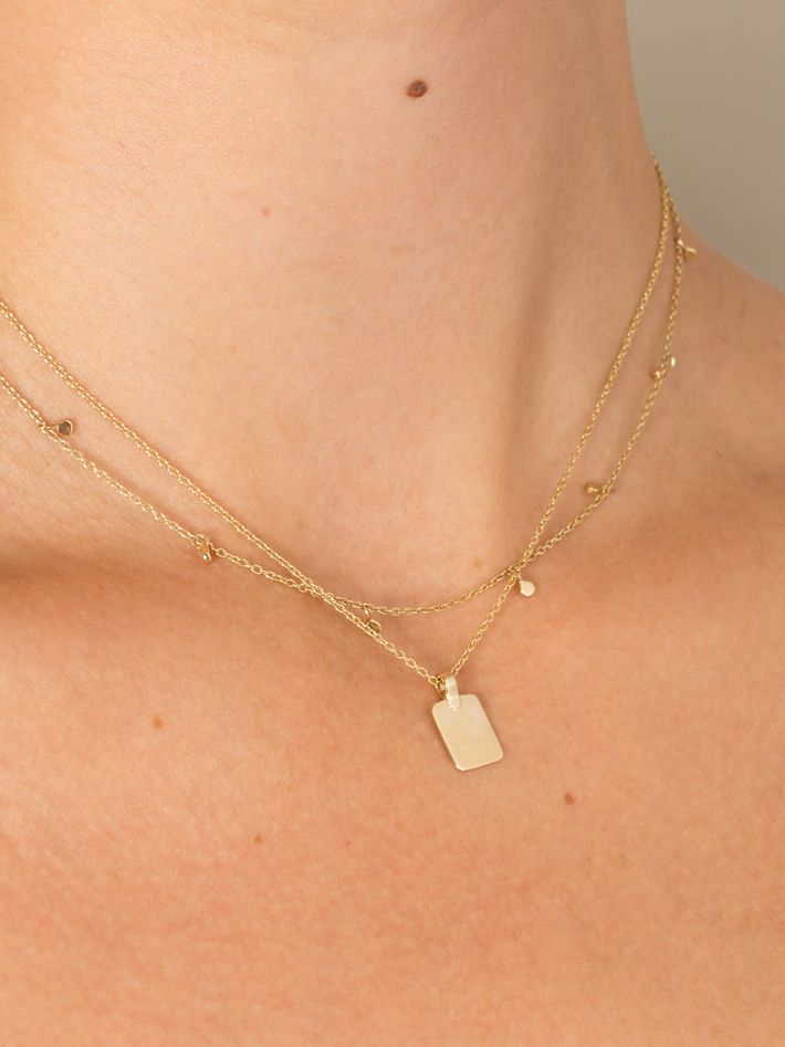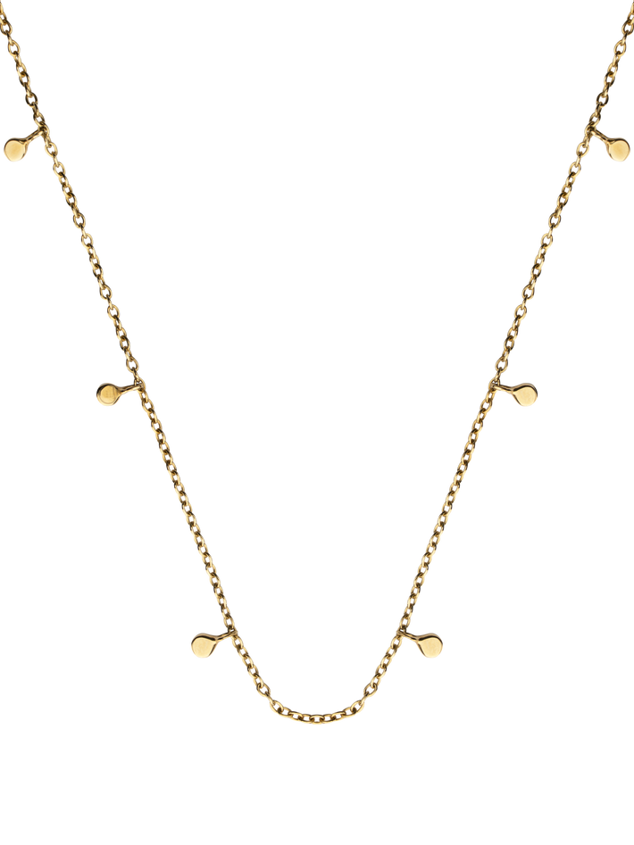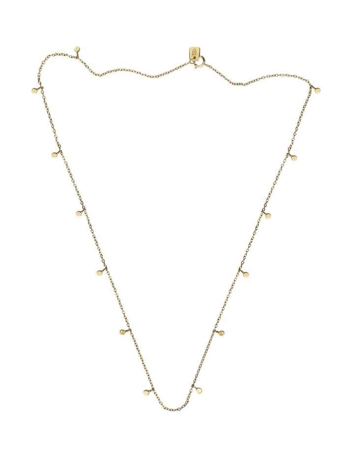 Making a great layering piece or even worn on its own, the tiny beaded charms on this piece add texture to any look.