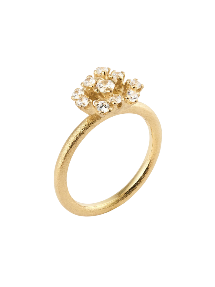 Frosty halo - ring in 18k yellow gold with 0,37ct diamond (1x0,10+9x0,03), 2 mm.