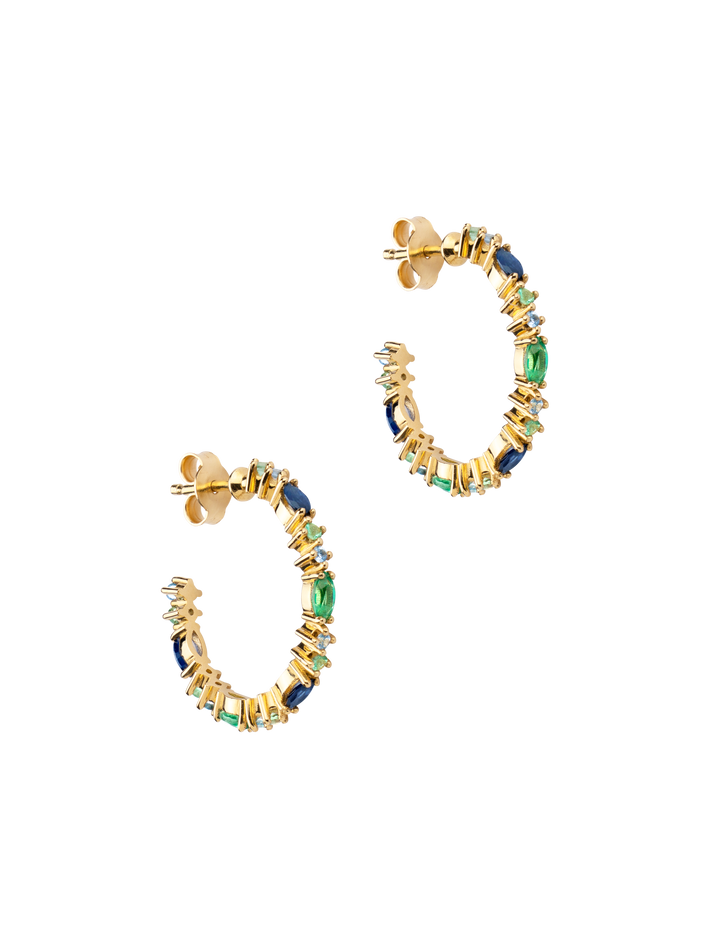 18 kt solid yellow gold16 emeralds & 18 sapphiresPair of earrings