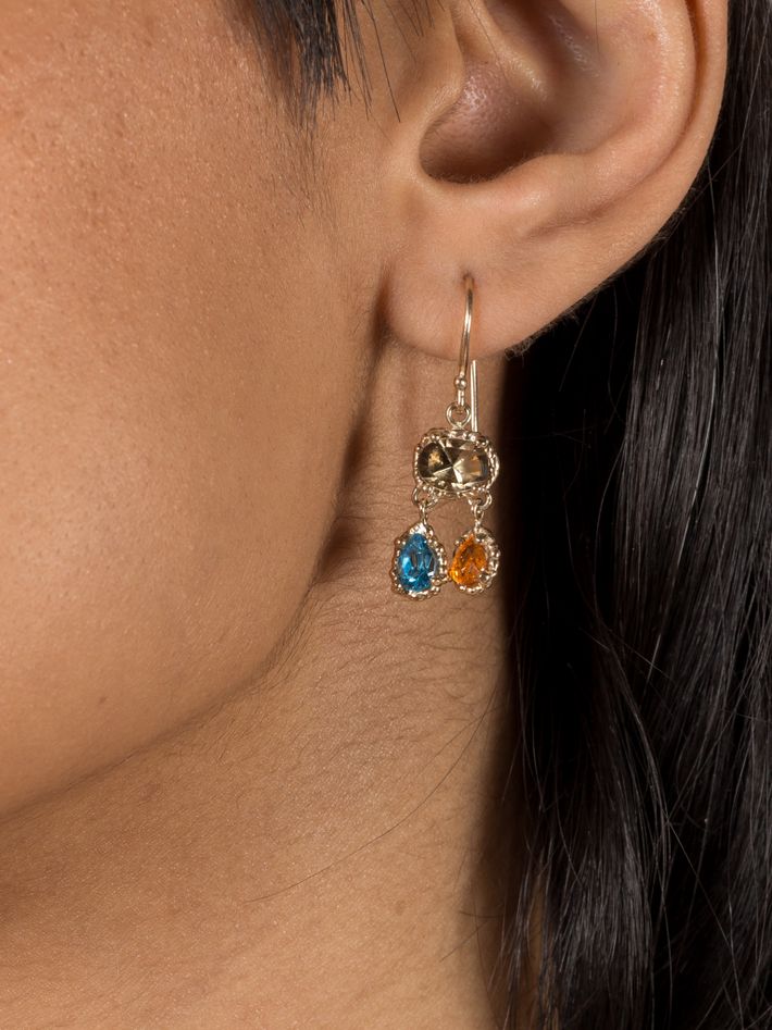 9 kt solid yellow gold2 quartzs, 2 garnets & 2 topazsPair of earrings