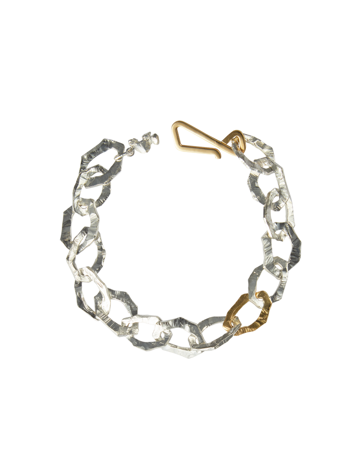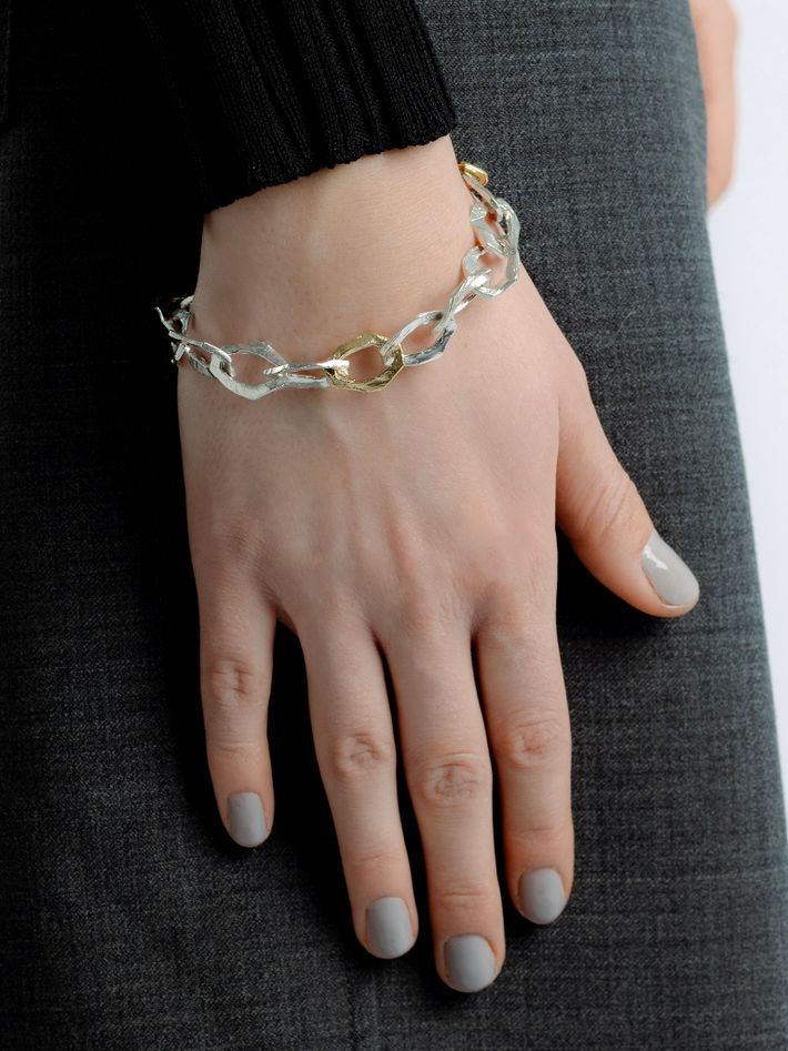 Grim large bracelet with gold link in silver and 18k yellow gold