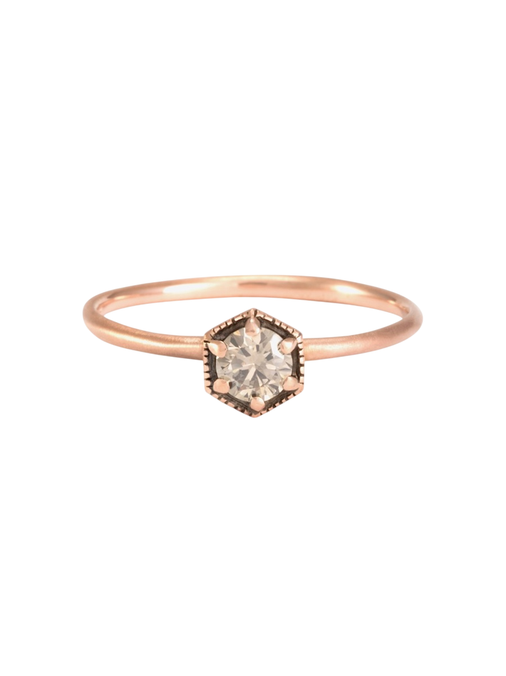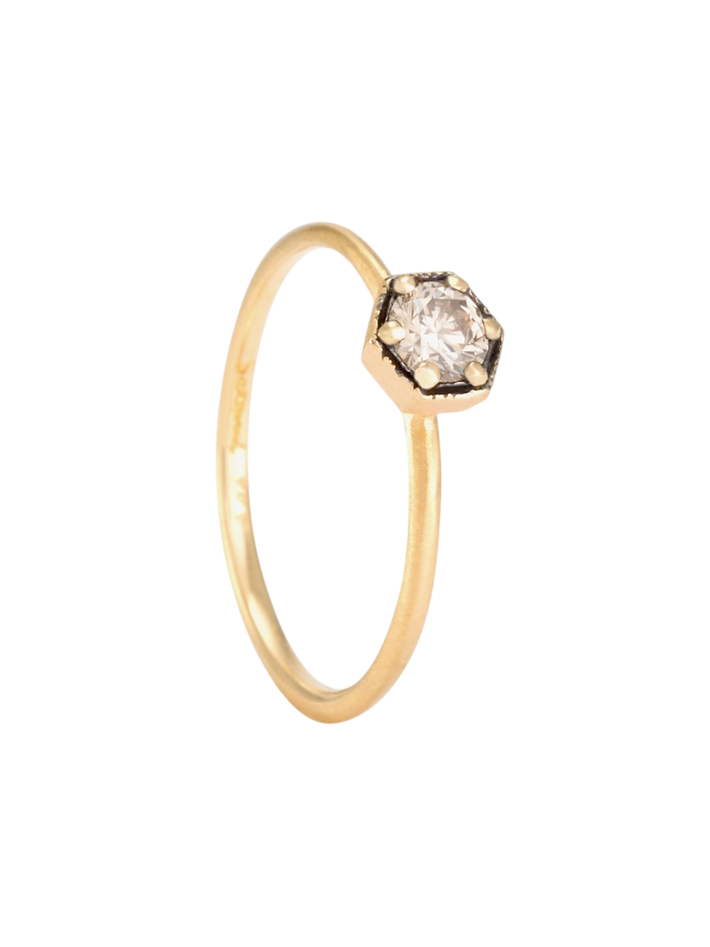 4mm hexagon brown diamond ring