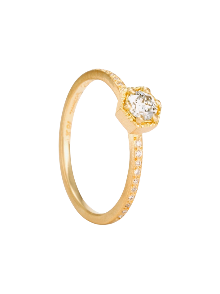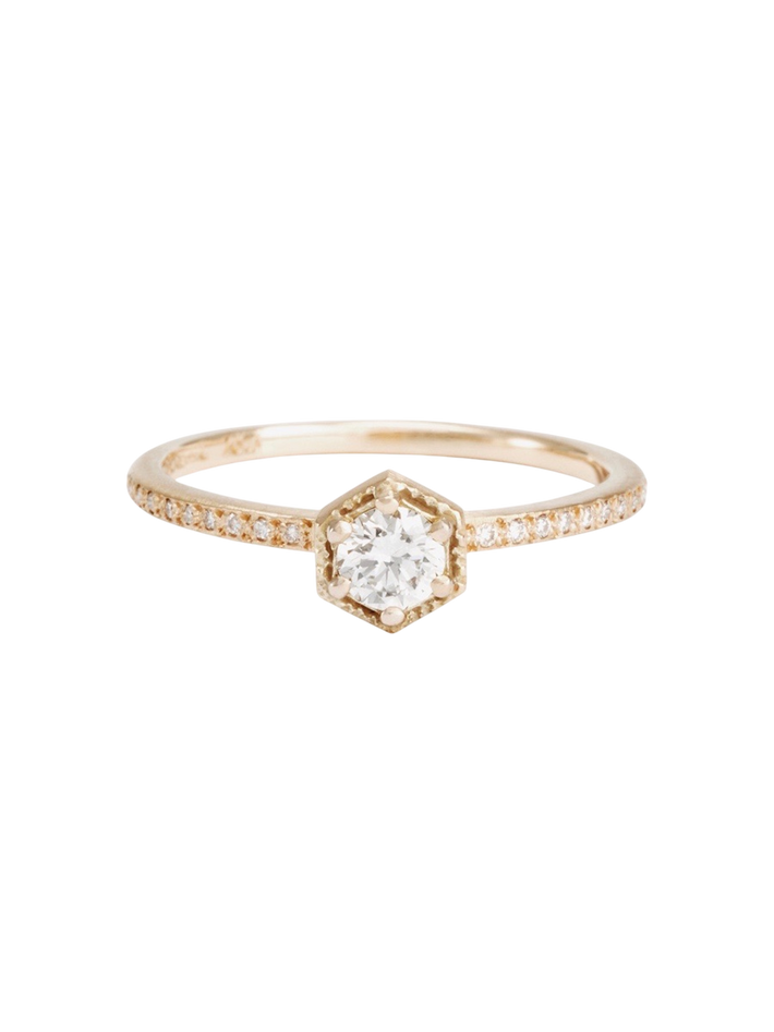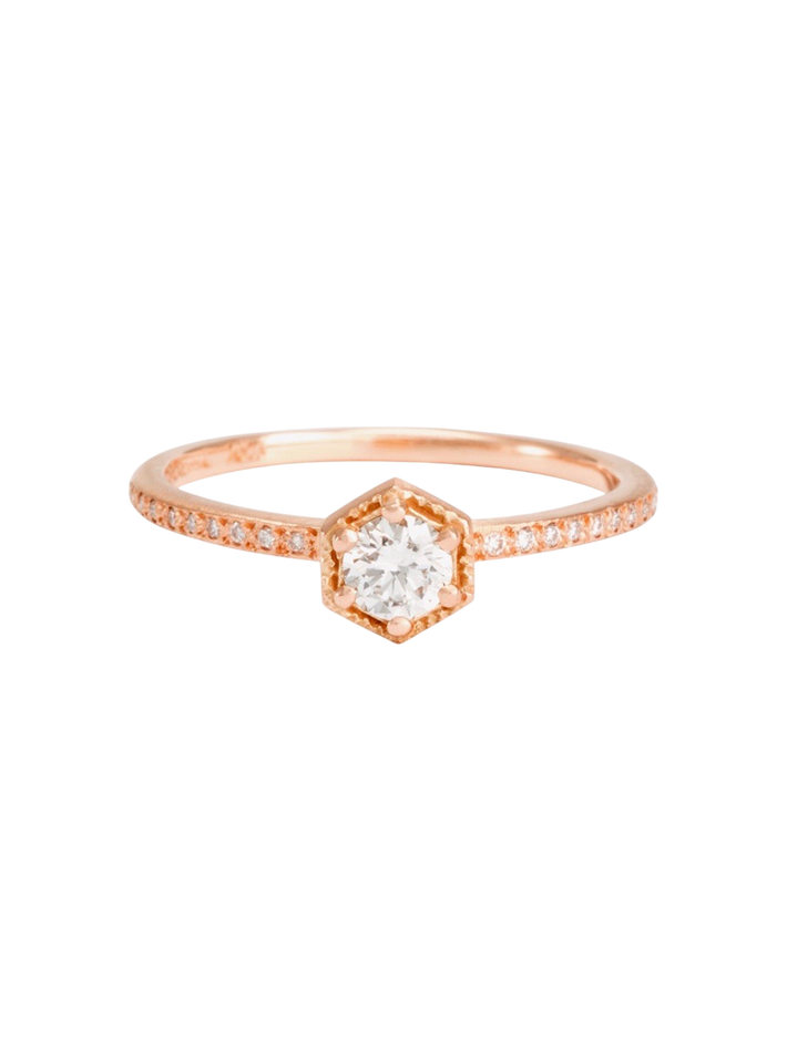 4mm white diamond hexagon pave ring