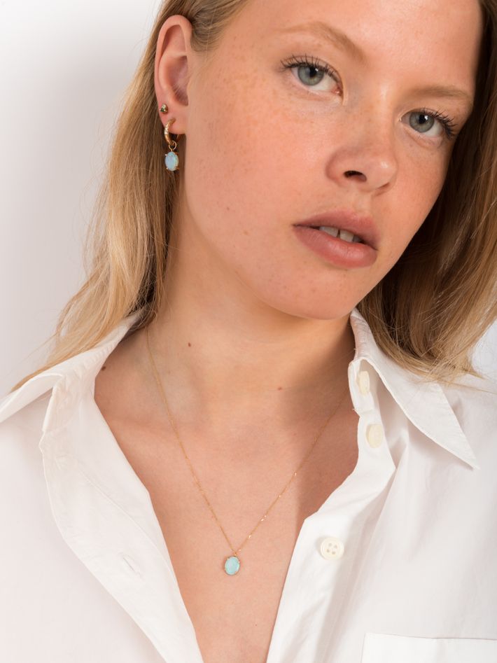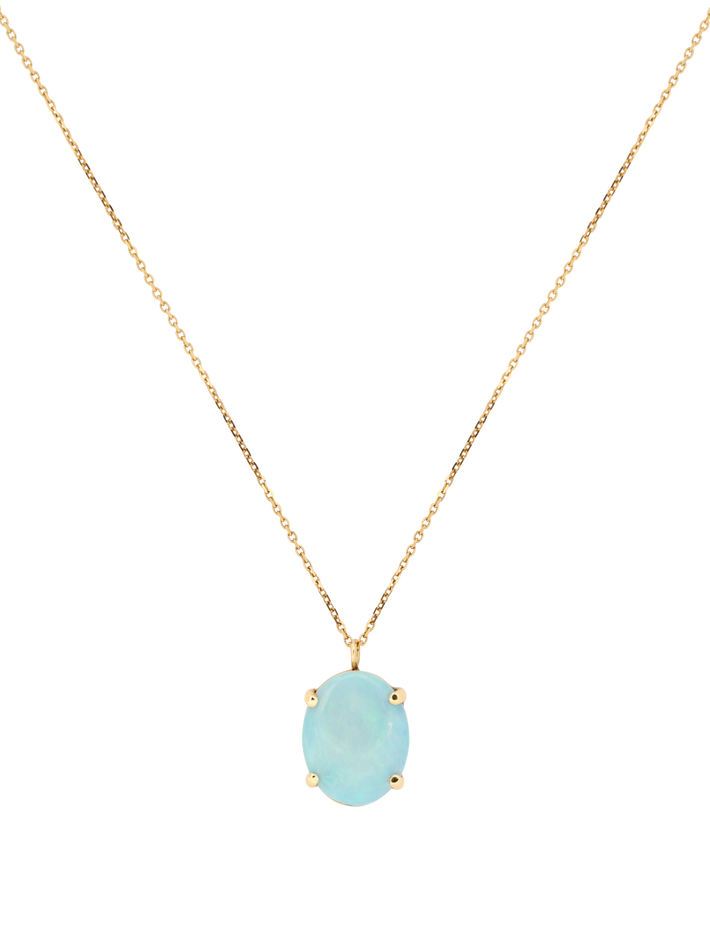 This delicate pendant features a vibrant opal. Wear alone for a simple statement or with others as the perfect layering piece.