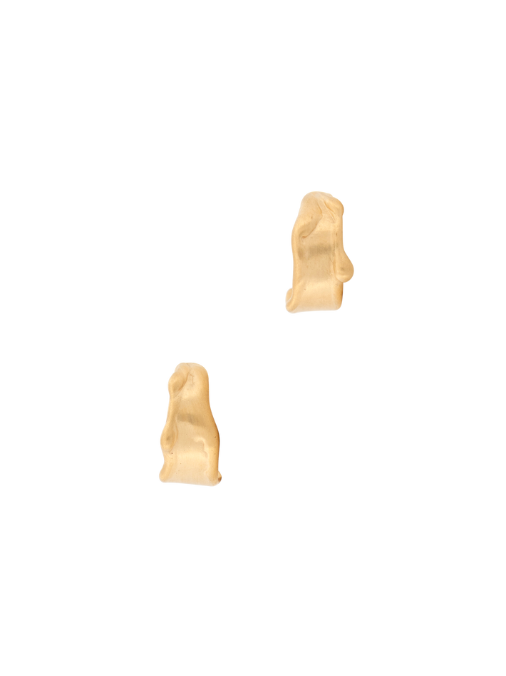 These hoops capture the organic textures of molten gold, this is the small pair which looks great stacked with the medium size.