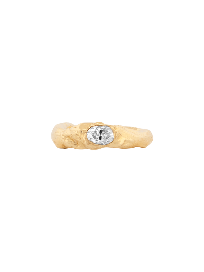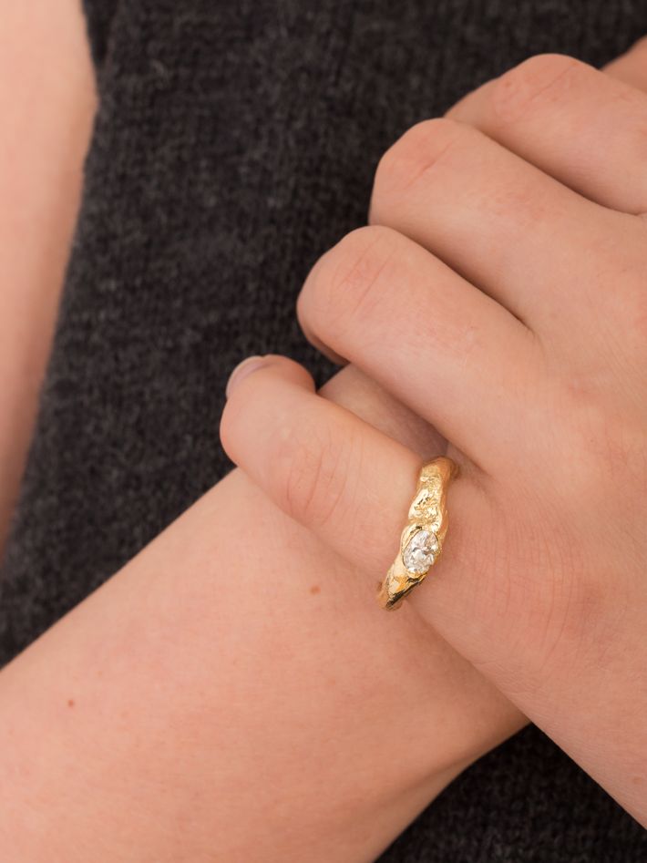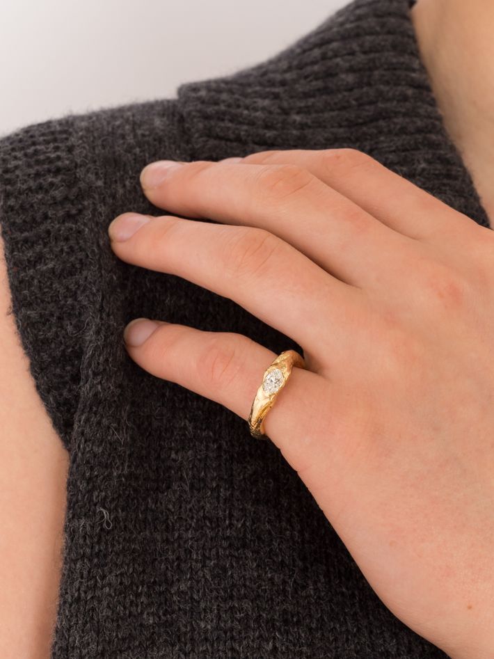 A beautiful band of yellow gold set with a stunning antique white diamond - simplicity at it's best.