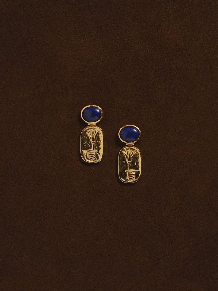 18 kt yellow gold plated sterling silver2 lapisPair of earrings