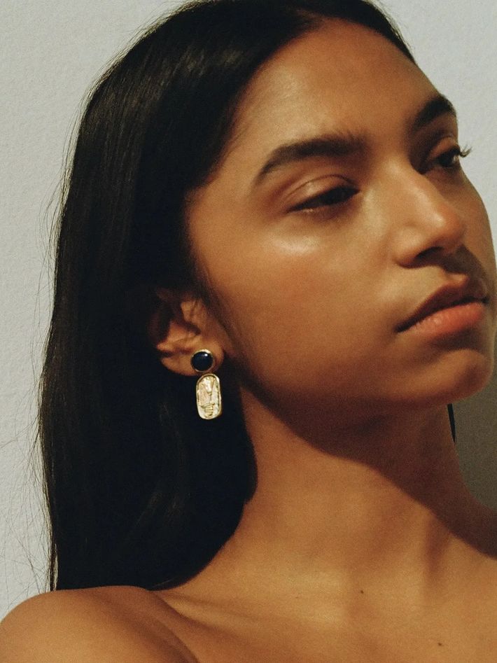 Made of plated 18 karat yellow gold, a thin layer of precious metal layered on the surface of a precious base metal. We recommend using our replating service every 3 or 4 years.