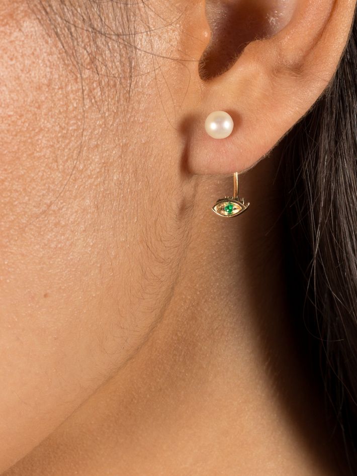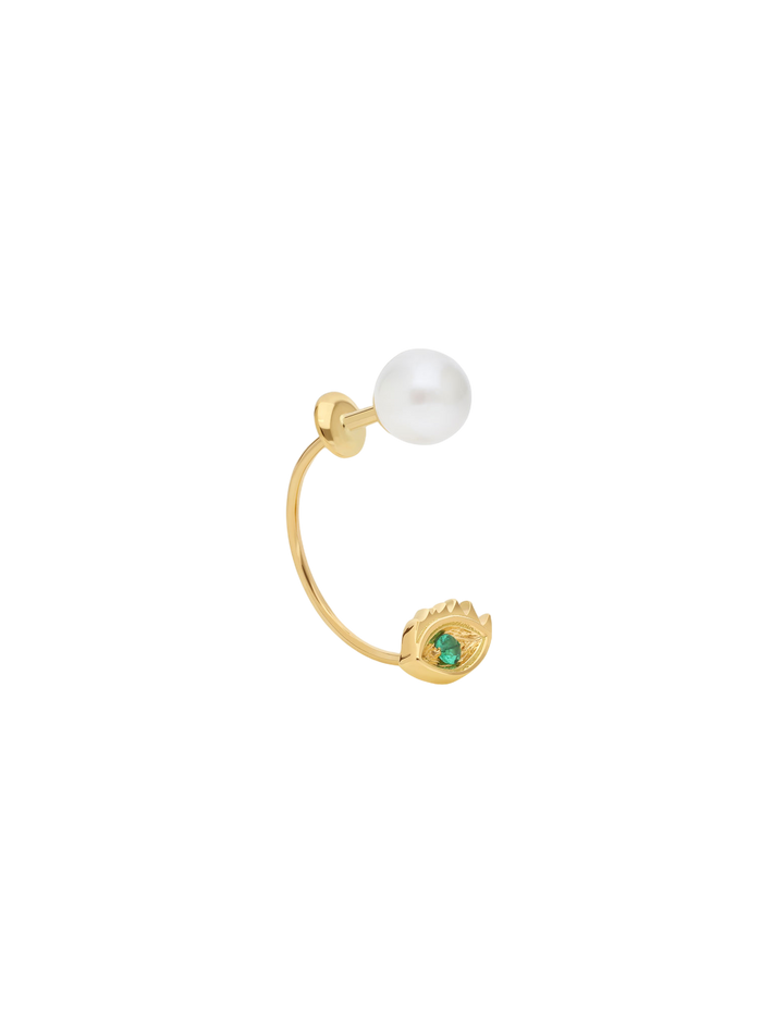 18 kt solid white gold0.05 ct in 1 emerald & 1 pearlSingle earring