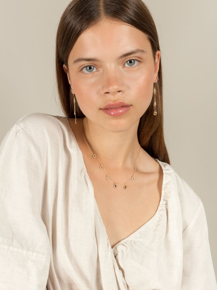 "We love the organic shapes and cuts found throughout Emilie's collection and how she celebrates the imperfections in metals and natural gemstones."