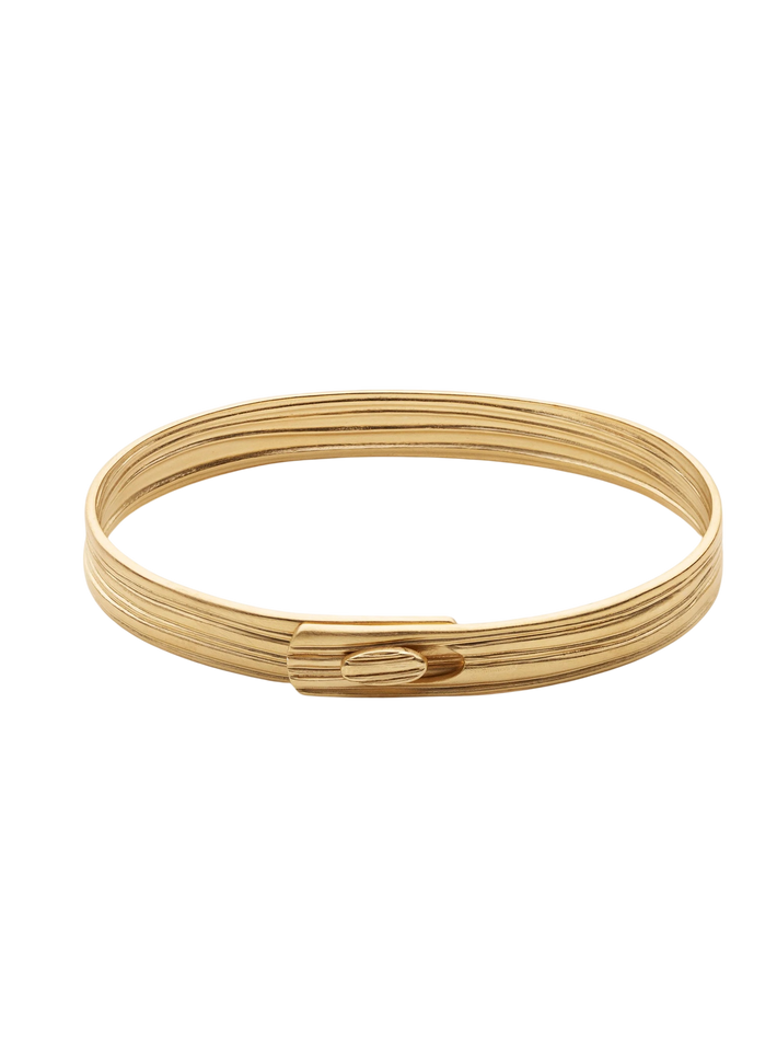 Made of plated 18 karat yellow gold, a thin layer of precious metal layered on the surface of a precious base metal. We recommend using our replating service every 3 or 4 years.
