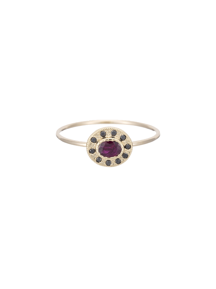 14 kt solid yellow gold1 ruby & 10 black diamonds