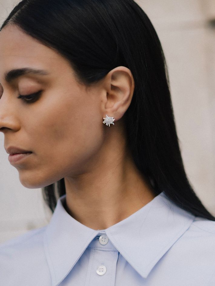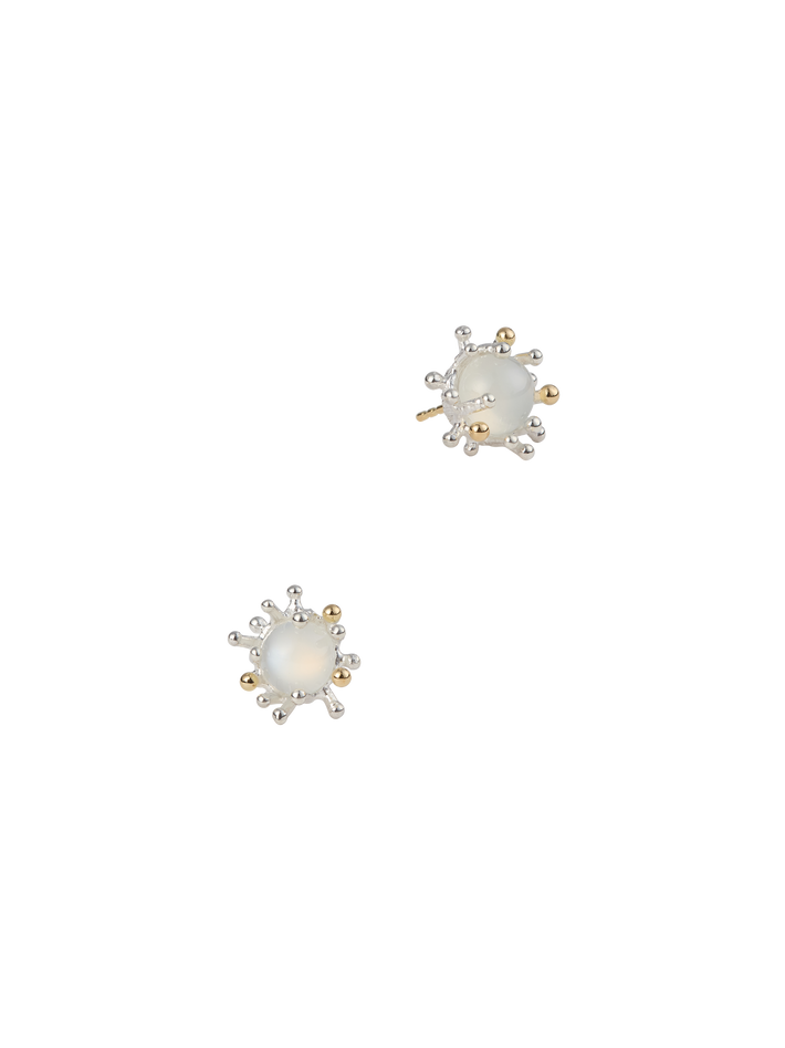 Sea anemone earrings in silver and 18k yellow gold with white moonstone