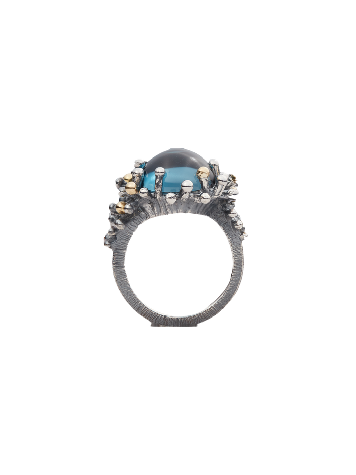 Sea anemone ring in silver and 18k yellow gold with london blue topaz