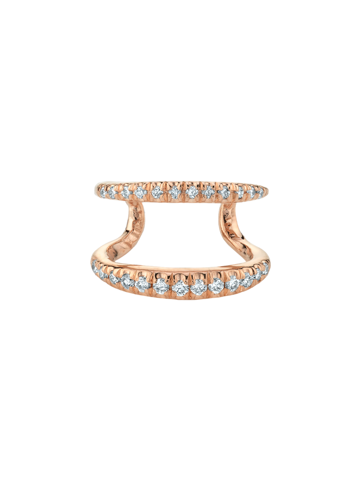Twin tusk ear cuff with double line pavé white diamonds in rose gold