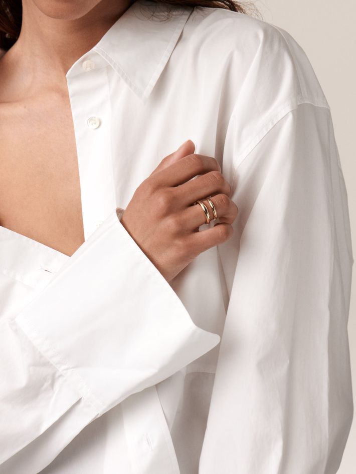 Made of a single, solid precious metal or metal alloy. Highly durable, can always be re-polished to regain its shine after wear.