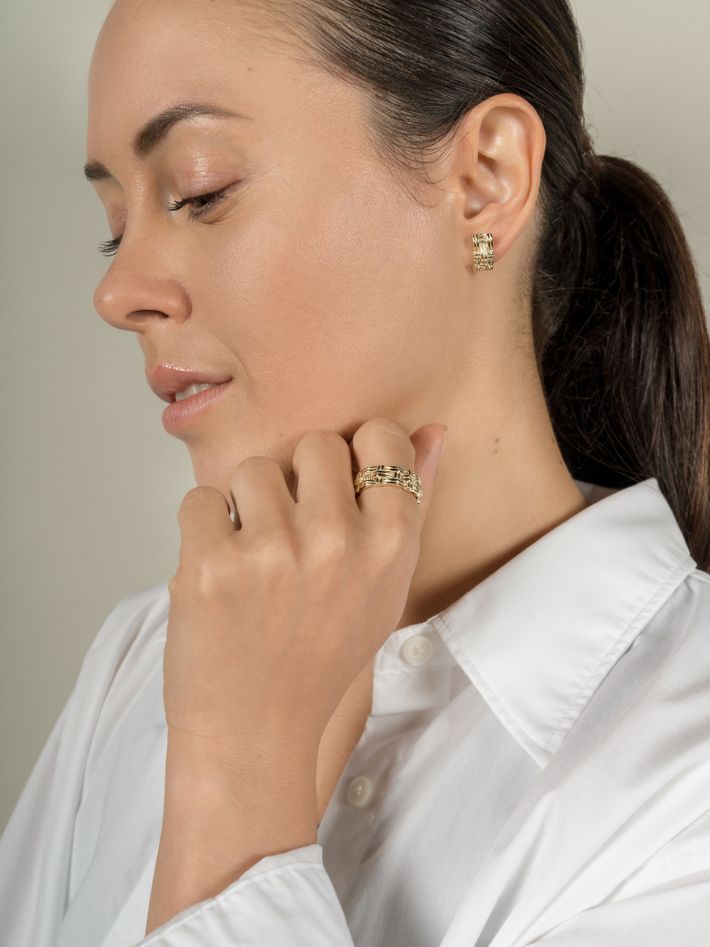 Made of a single, solid precious metal or metal alloy. Highly durable, can always be re-polished to regain its shine after wear.