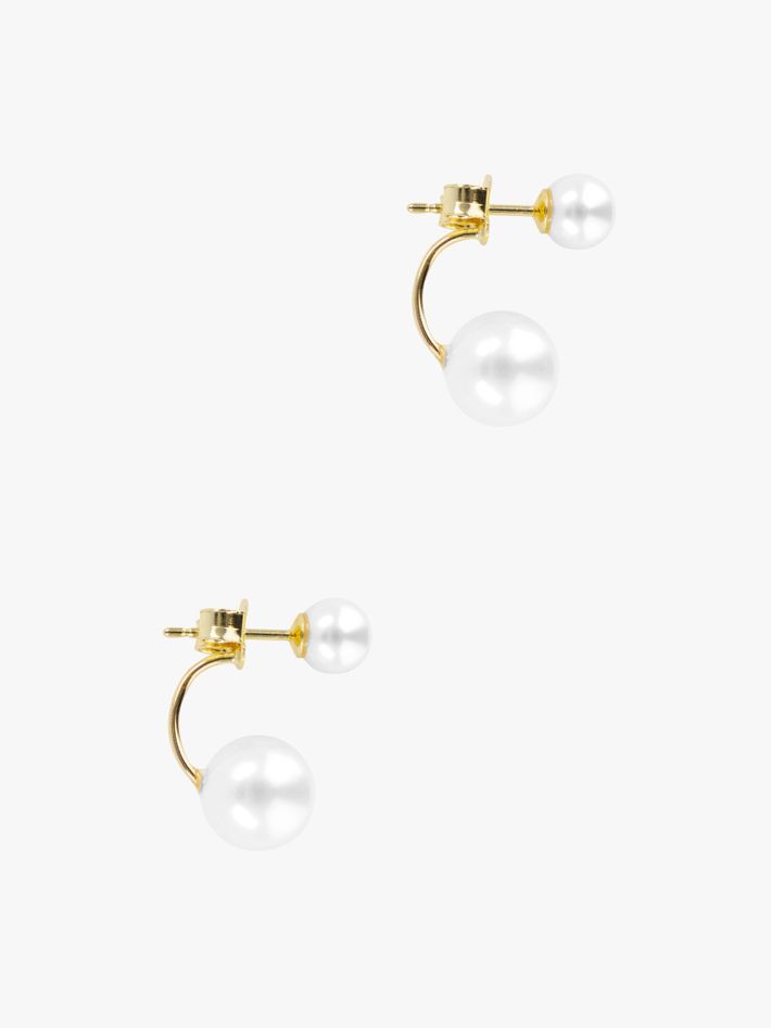 Beautifully hugging the earlobe, the bigger pearl on this pair of studs seems to be floating in air.