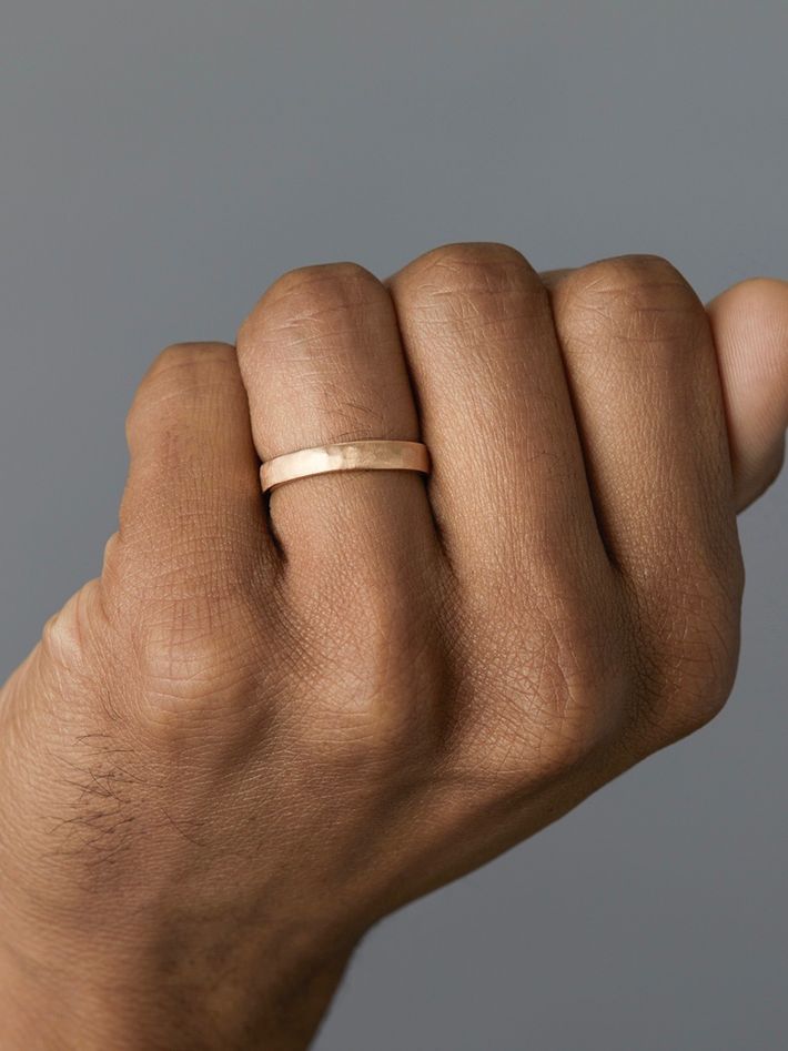 Made of a single, solid precious metal or metal alloy. Highly durable, can always be re-polished to regain its shine after wear.