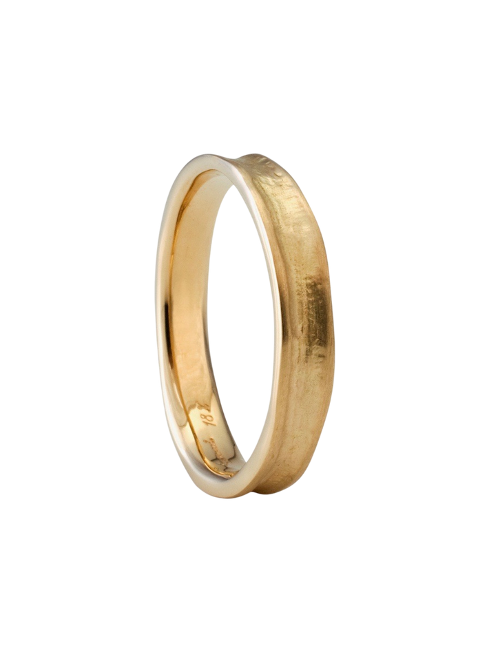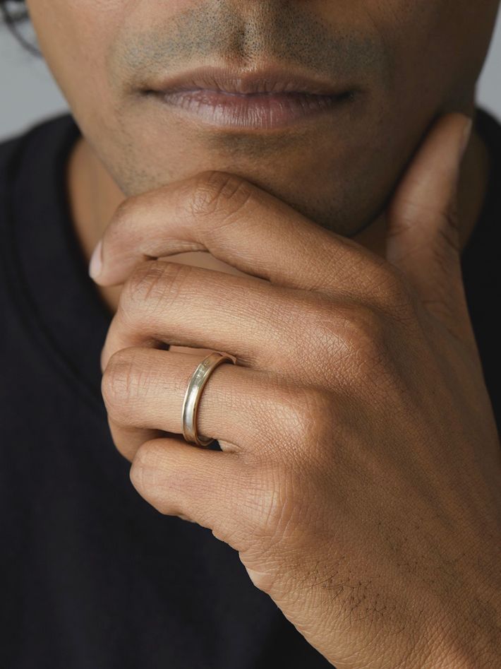 Made of a single, solid precious metal or metal alloy. Highly durable, can always be re-polished to regain its shine after wear.