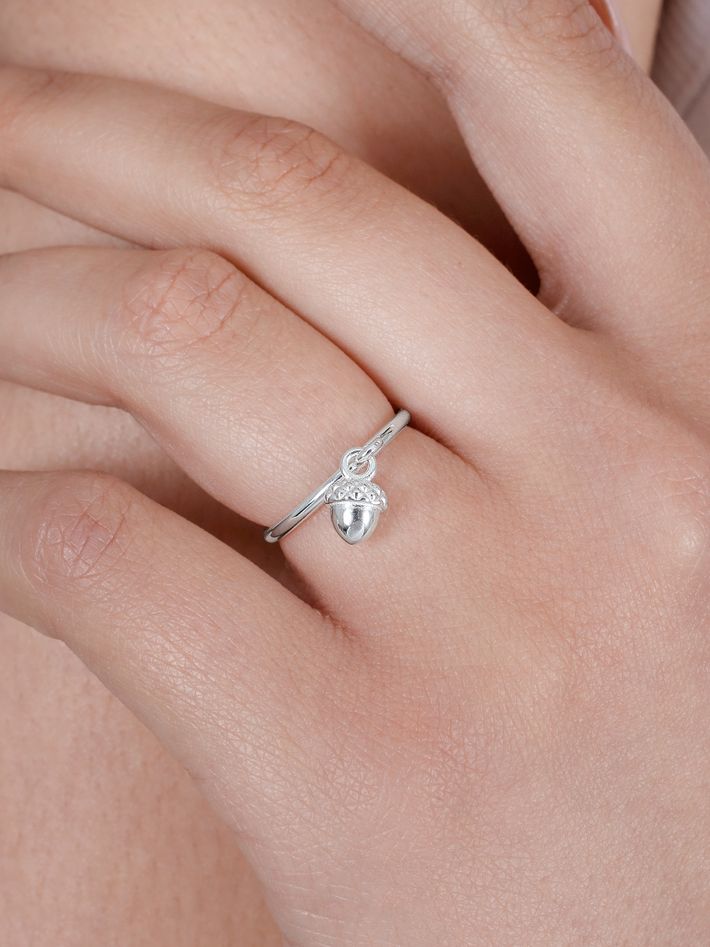 Acorn charm ring silver