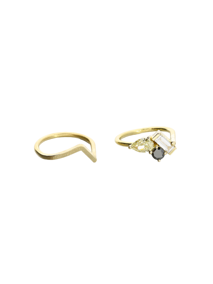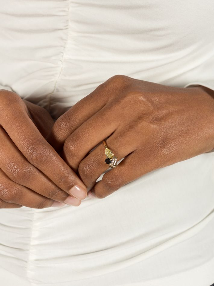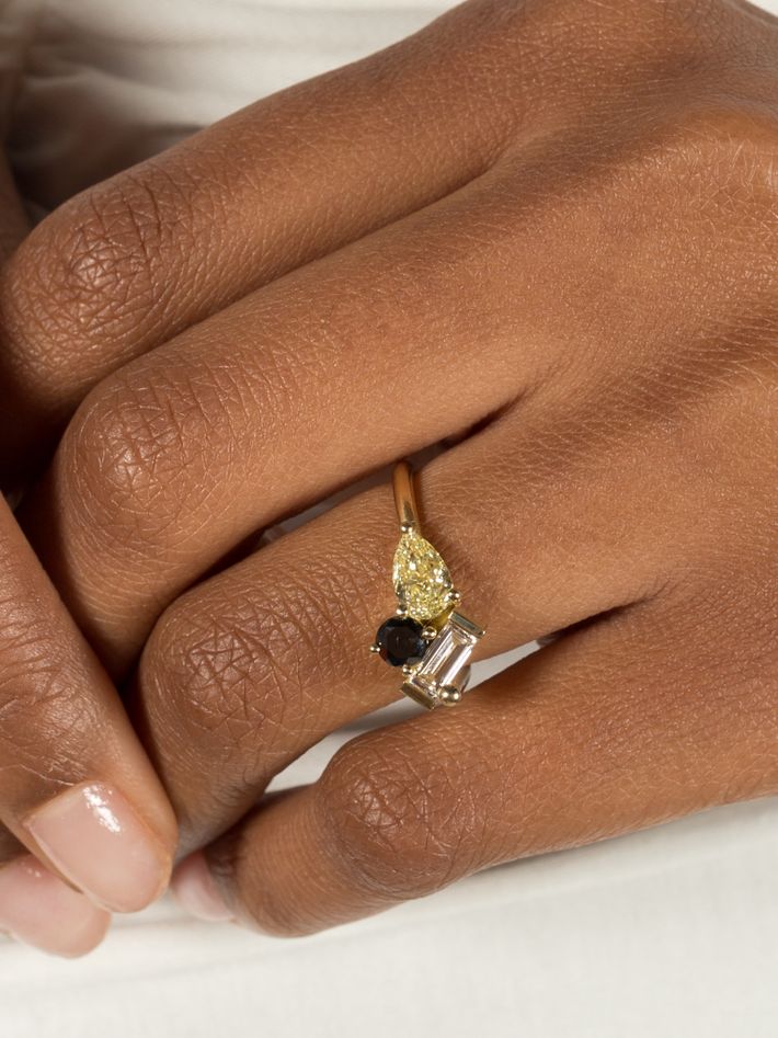 Only one piece made18 kt solid yellow gold0.67 ct in 1 diamond, 0.42 ct in 1 diamond & 0.28 ct in 1 black diamond
