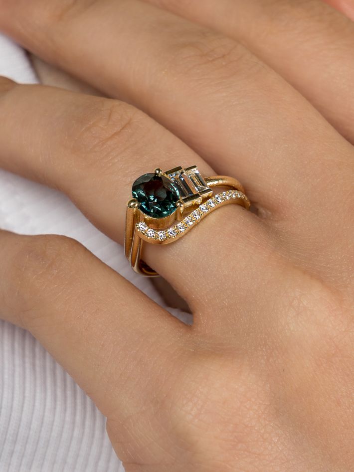 A precious and highly durable metal which comes in different golden hues depending on its purity.