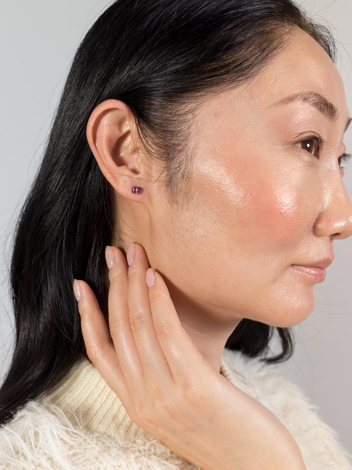 Bezel wrapped amethyst stud earring