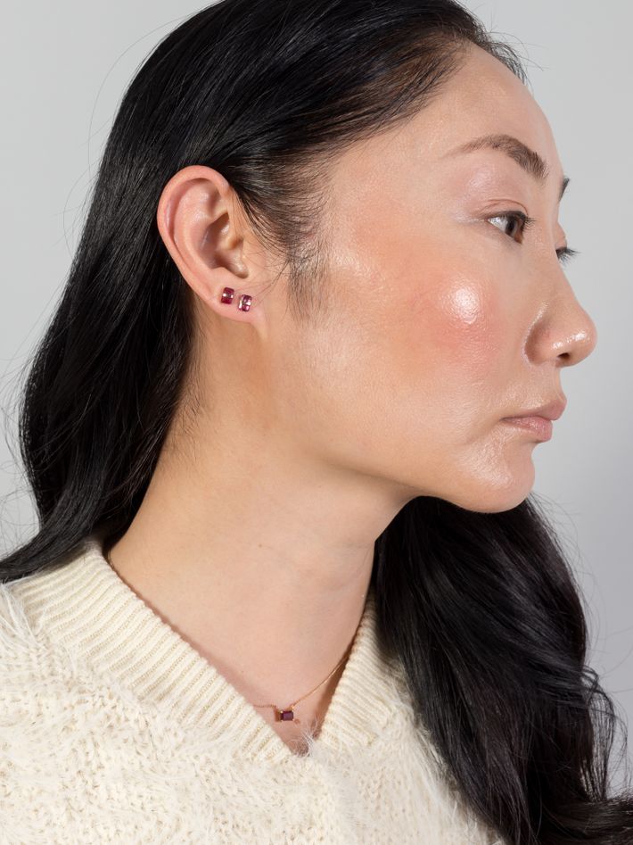 Bezel wrapped garnet stud earring