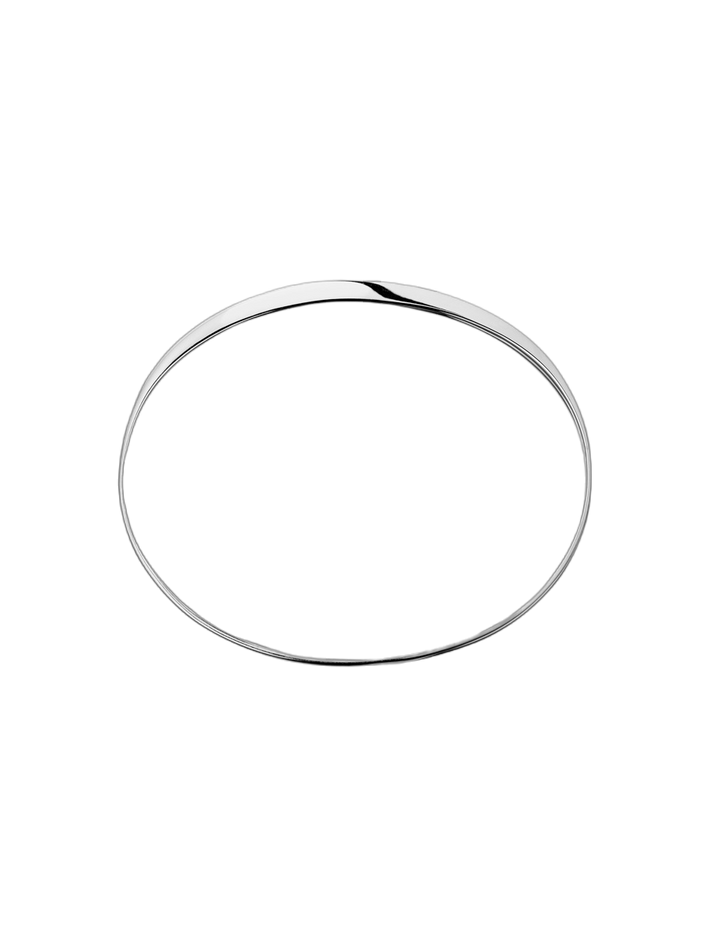 This slim bangle plays with the radiant lines of a simple, twisted ellipse that catches and reflects the light as you move.