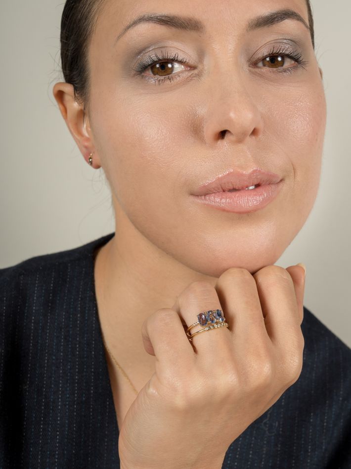 14 kt solid yellow gold3 sapphires & 6 diamonds