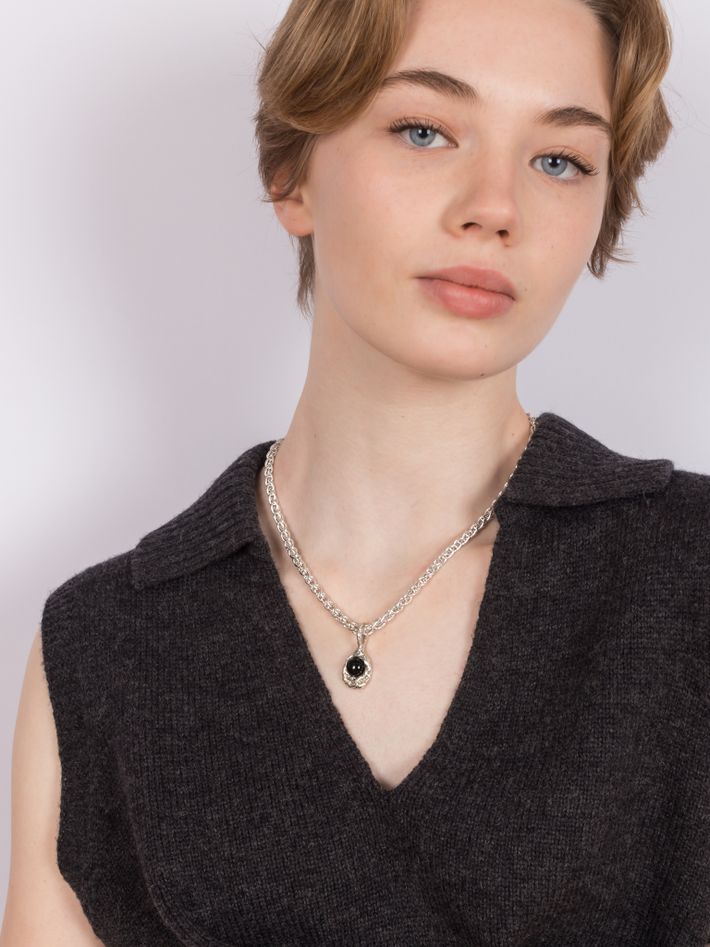 The combination of sterling silver and onyx in this statement chain is really striking.