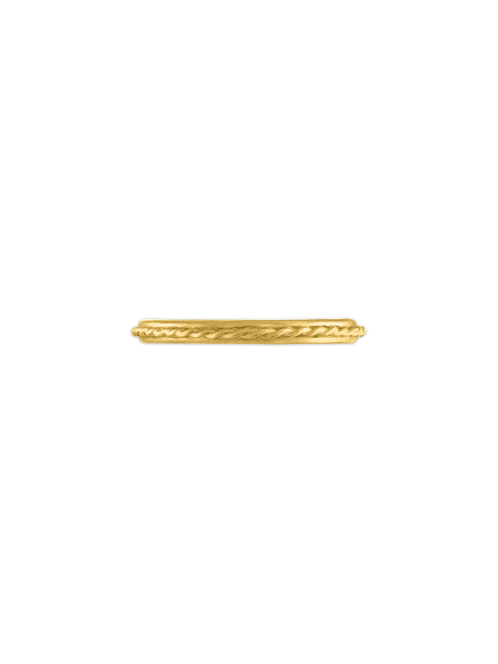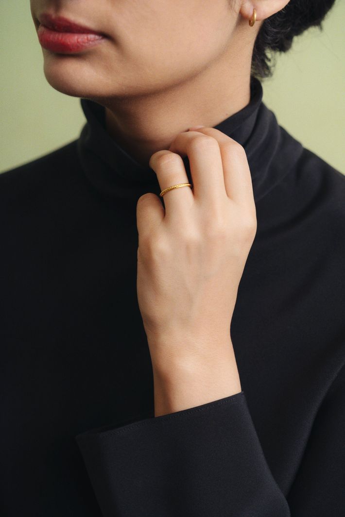 91.6% gold content, a warmer beeswax-yellow hue. An exclusive and malleable precious metal which will shape slightly to the wearer over time. 22kt gold is hypoallergenic and generally safe for people with sensitive skin.