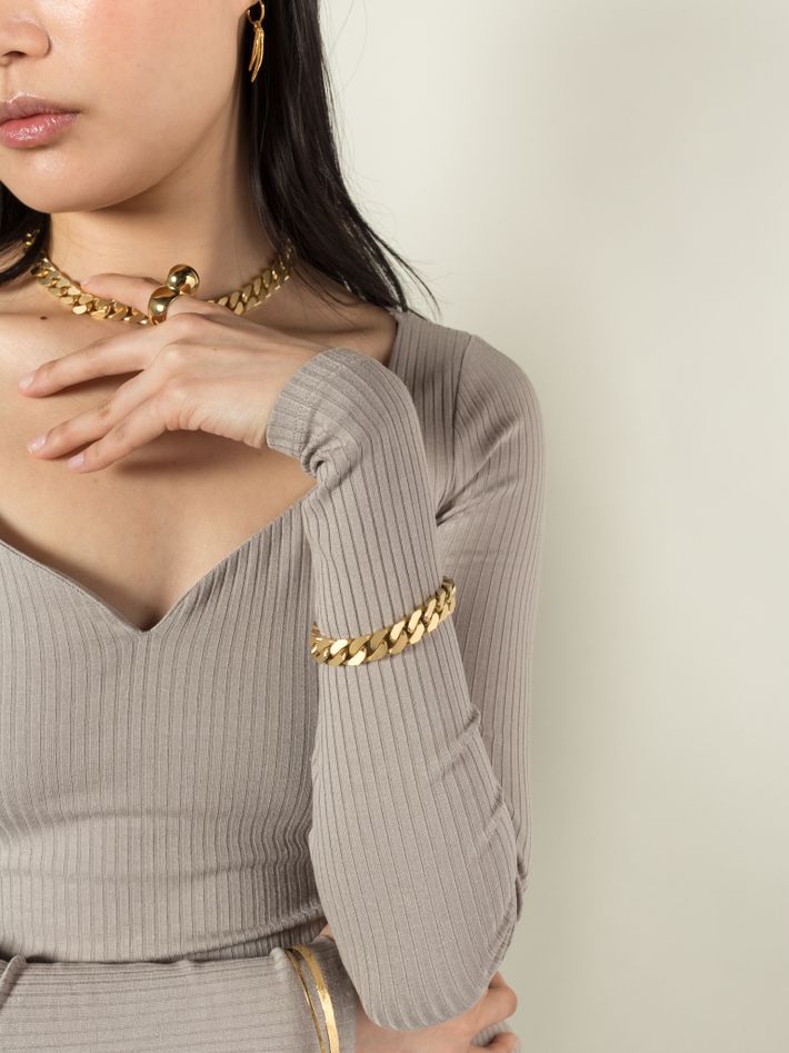 Made of plated 18 karat yellow gold, a thin layer of precious metal layered on the surface of a precious base metal. We recommend using our replating service every 3 or 4 years.