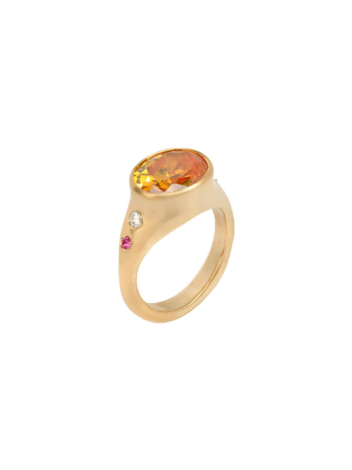 Solid yellow gold1 citrine, 2 rubies & 2 diamonds