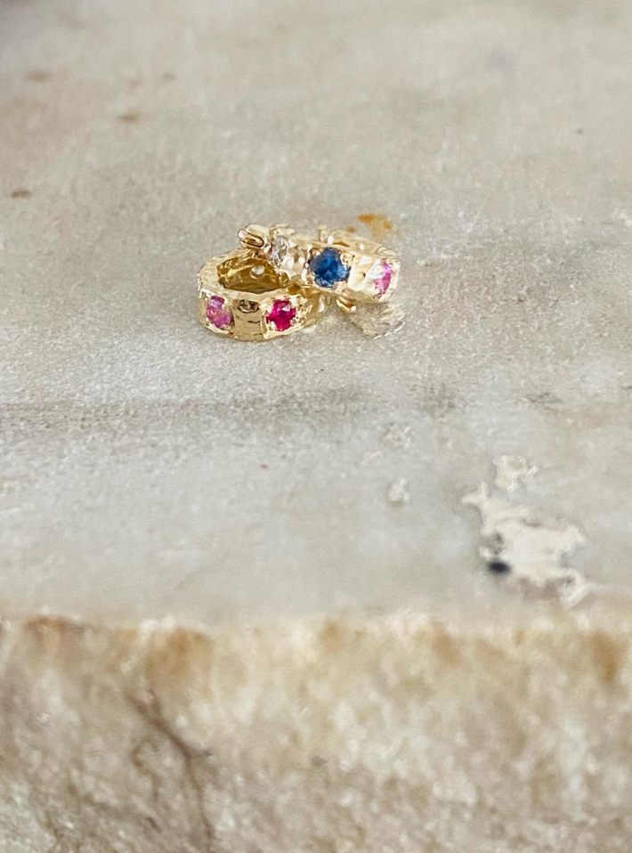 These huggies are set with beautiful precious stones, like mini treasure - they are really special and would make a great gift.